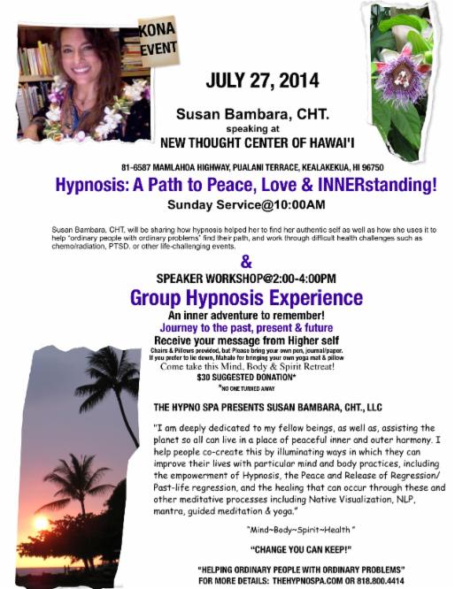 Now on the Big Island and available for Inter-Island House calls, group & individual Hypnosis, Native Visualization & Past Life regression sessions using the much celebrated Dolores Cannon Technique. Come take a life changing trip to change your mind and keep the change!